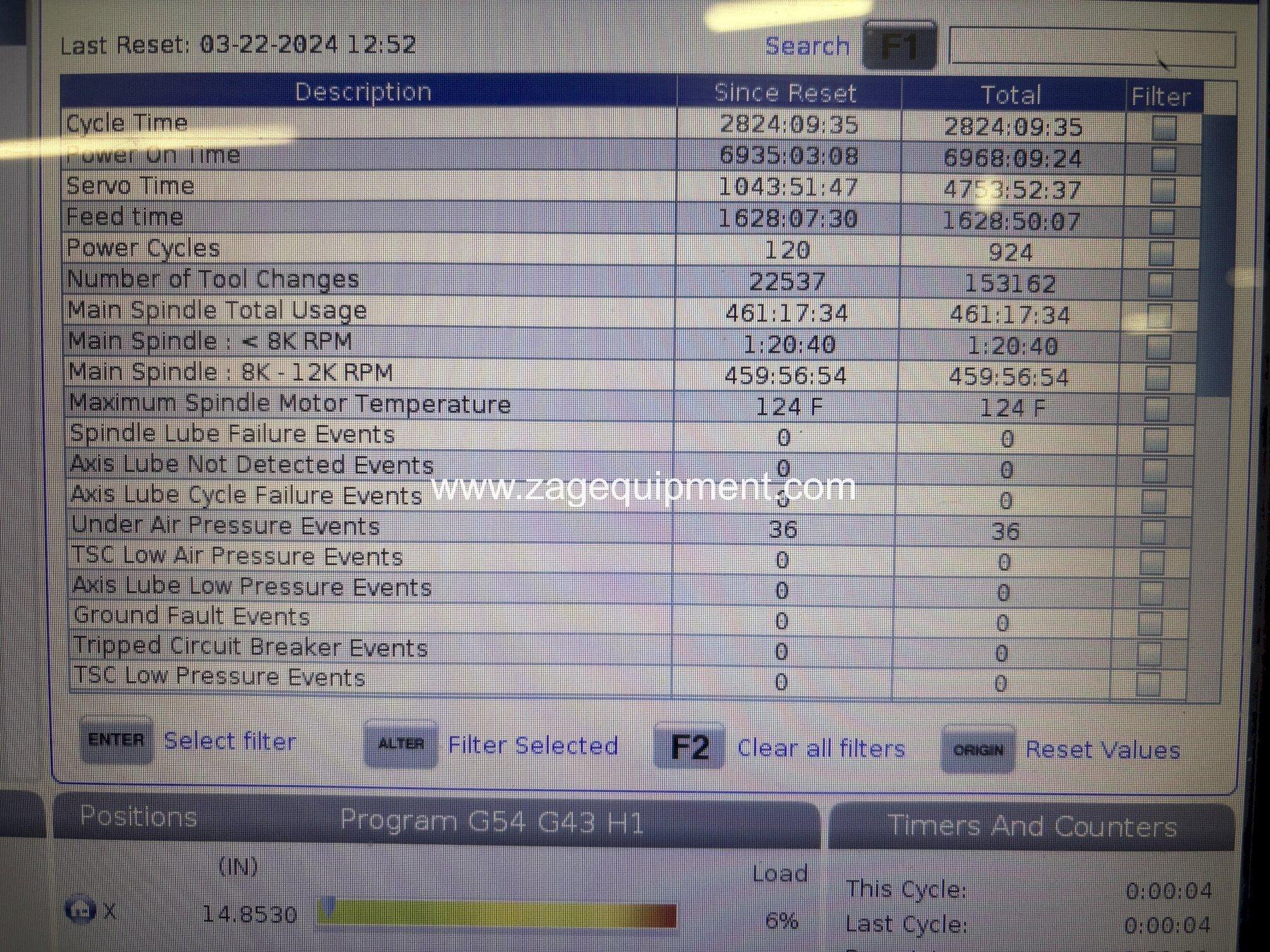 X Axis Travel: 30"Y Axis Travel: 16"Z Axis Travel: 20"Spindle motor: 30 hpSpindle speed: 12,000 RPMATC Capacity: 24Spindle taper: CT40Table-L: 36"Table-W: 14"Equipped with:- Haas CNC Control- Midaco A3016SD Shuttle Table- Wireless Intuitive Probing (WIPS)- Programmable Coolant Nozzle- High Speed Machining- Chip Auger